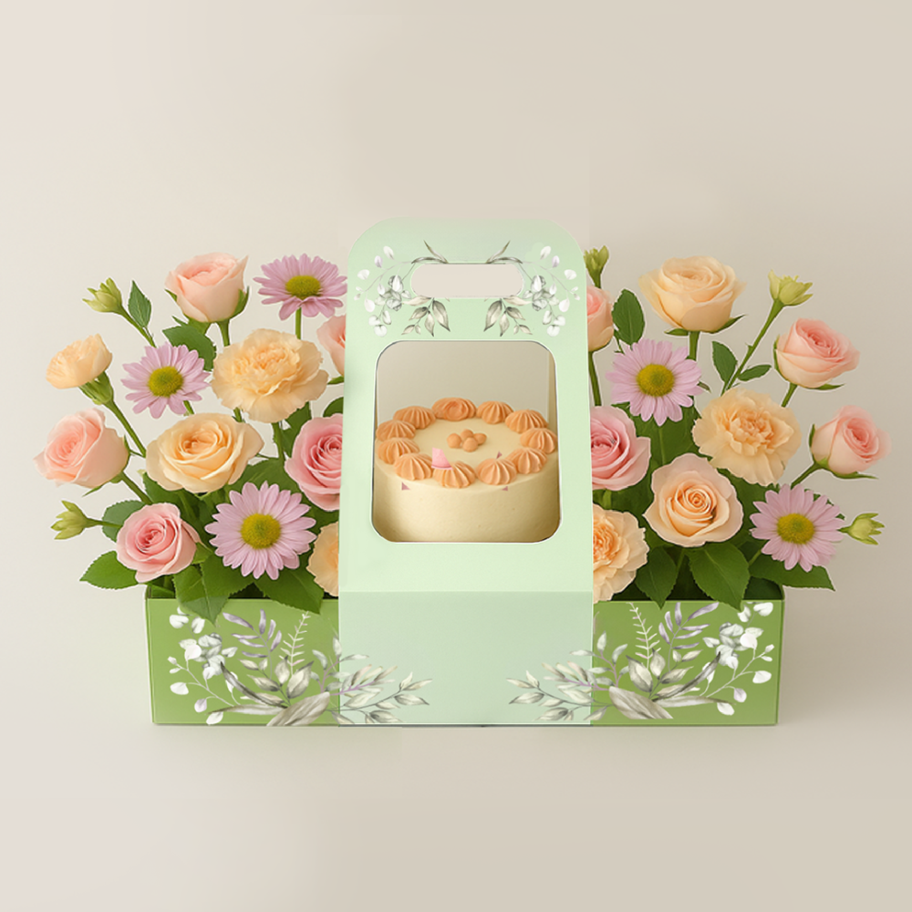 صندوق بحامل بتصميم مشجر بلون أخضر فاتح مناسب مع جميع ألوان الورد والكيك - 12 حبة